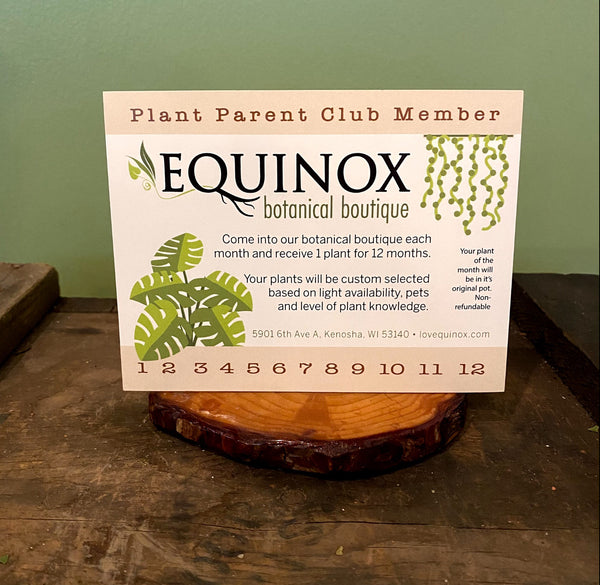 If you have a plant lover in your life and are searching for the perfect gift for them (or yourself) a Plant Parent Club membership is just what you're looking for. Come in once a month for twelve months to receive a hand selected plant